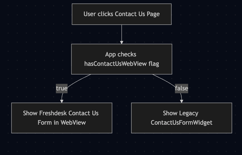 - If the flag is true → When user tap contact us the app shows the Freshdesk form (inside a WebView).