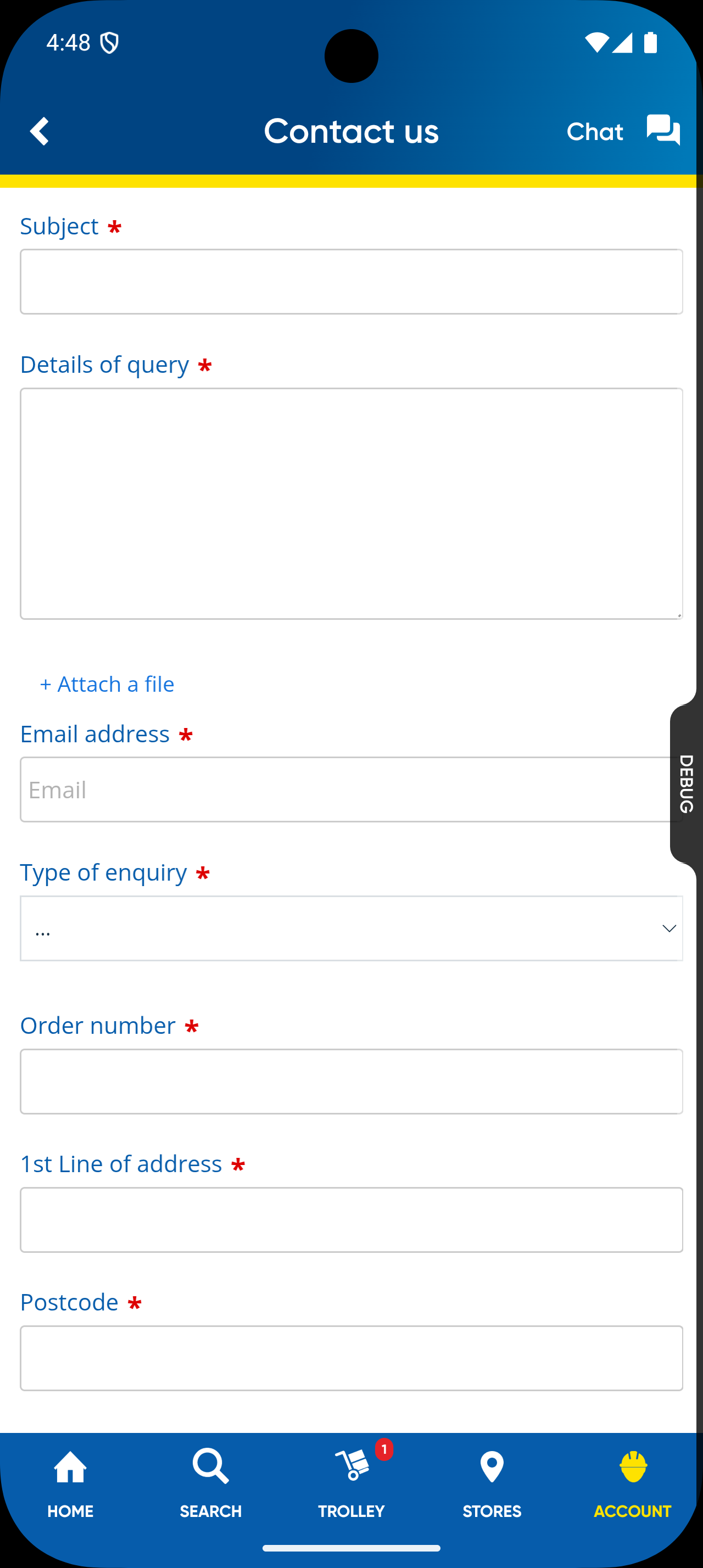 In 2024, Contact us feature was updated to match the Toolstation UK website’s new Freshdesk Contact Form (MOB-3823). Now, the app can show: