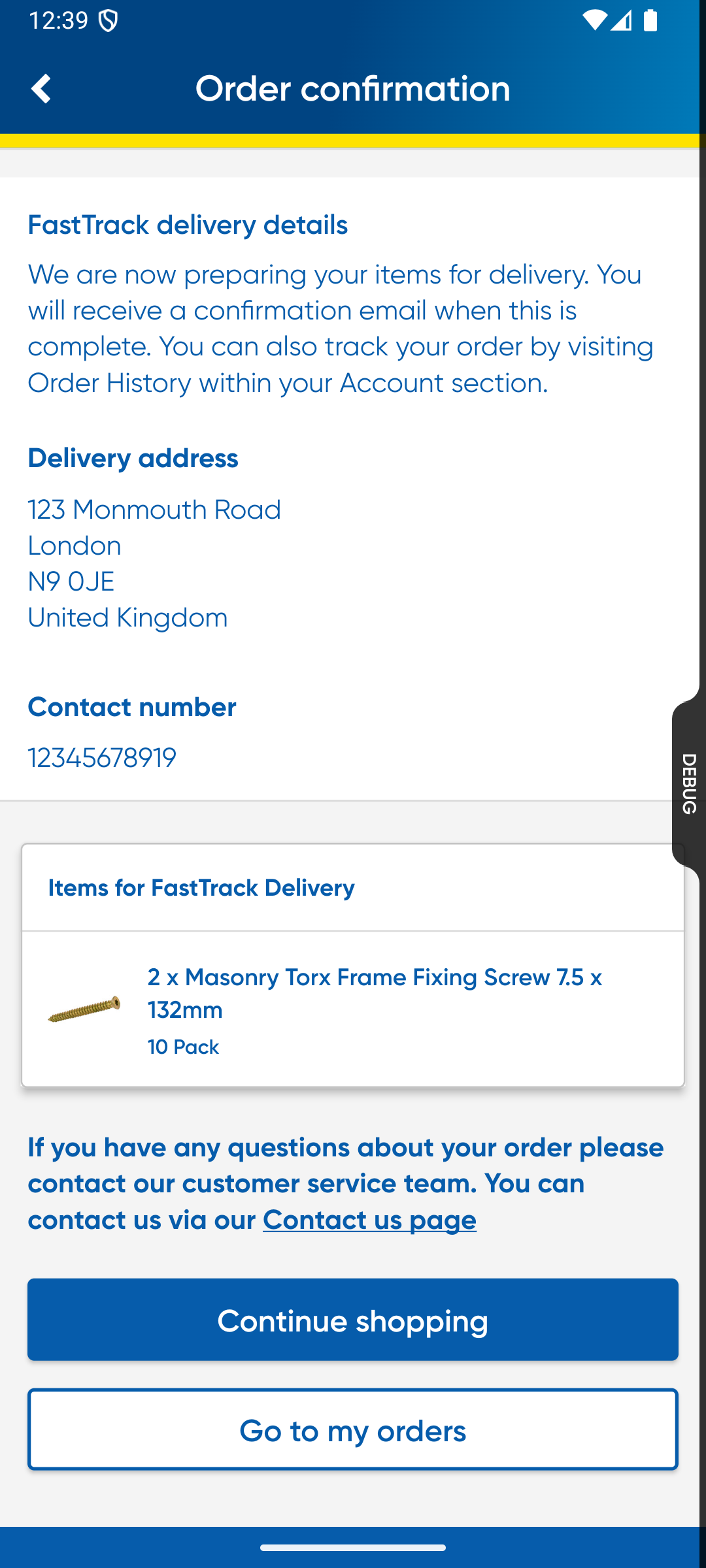 - Delivery details (Address, Method).