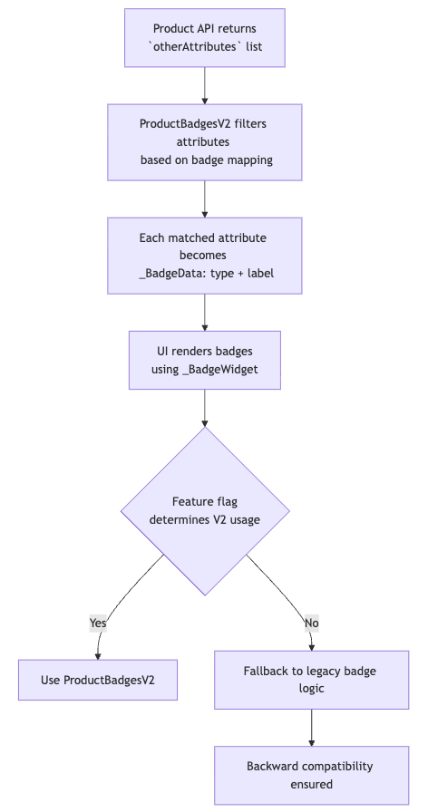 A --> B[ProductBadgesV2 filters attributes <br/> based on badge mapping]