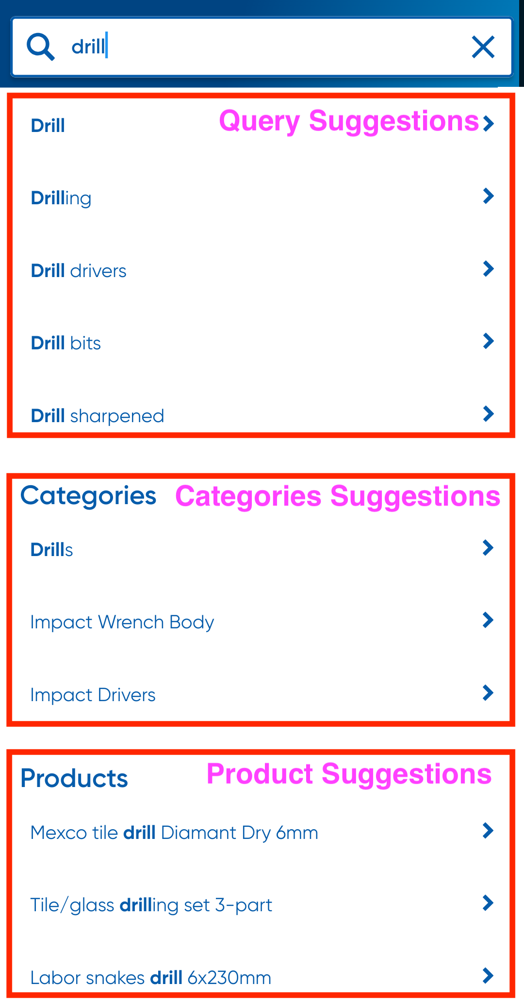 - Standard text-based search. When user selects a result from suggestion or after typing something they press enter/search.